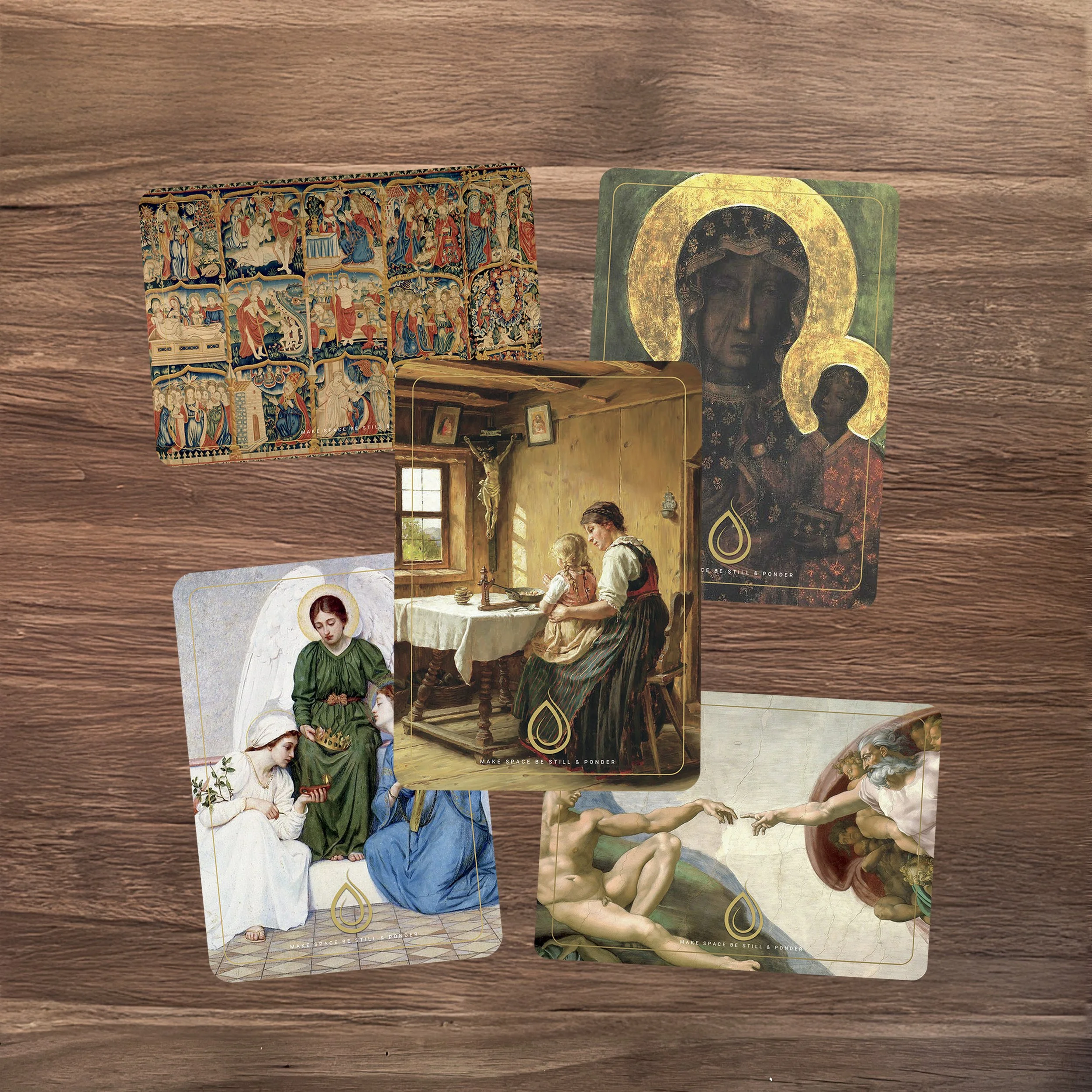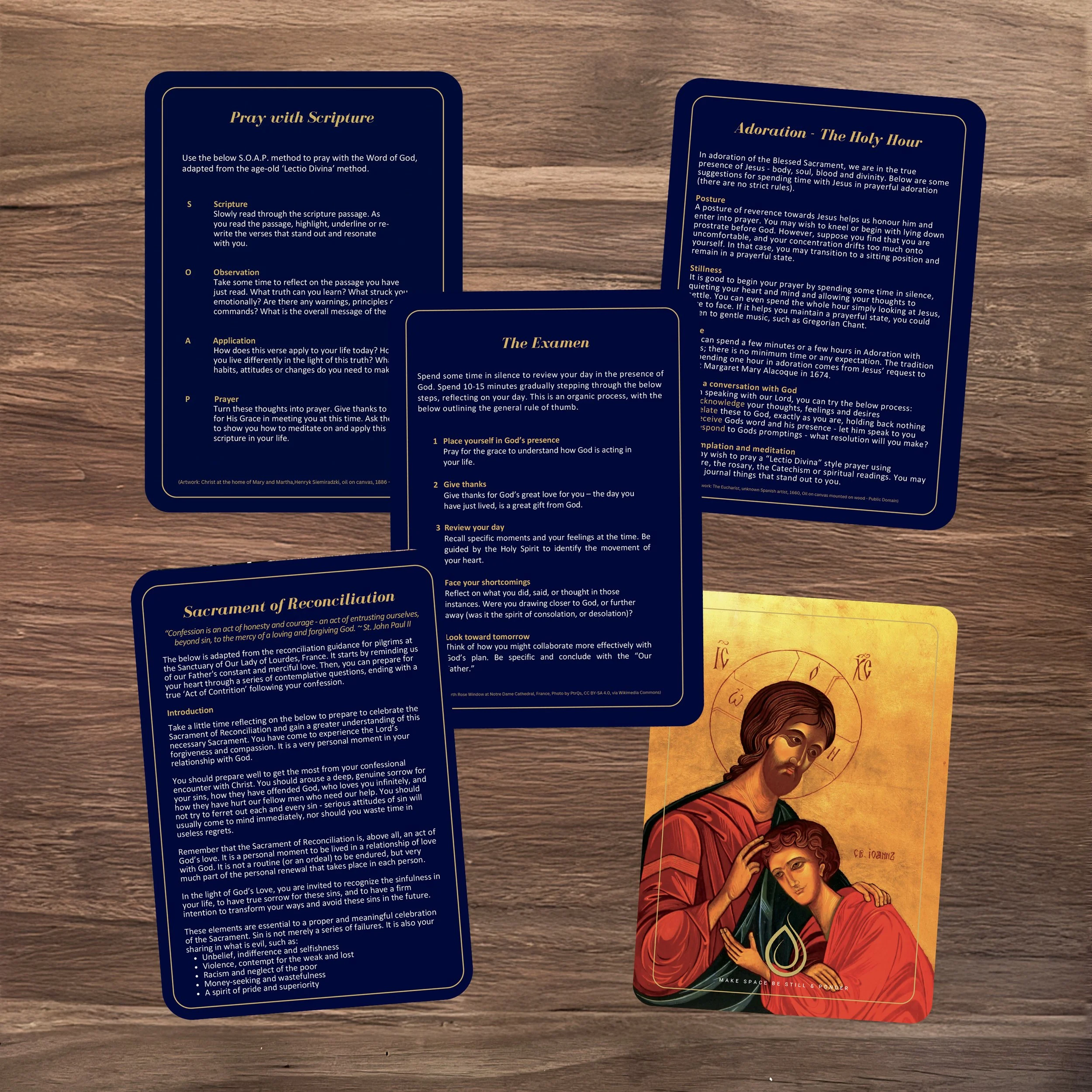 The 5 beautiful, velvet-touch prayer cards are grouped by theme.