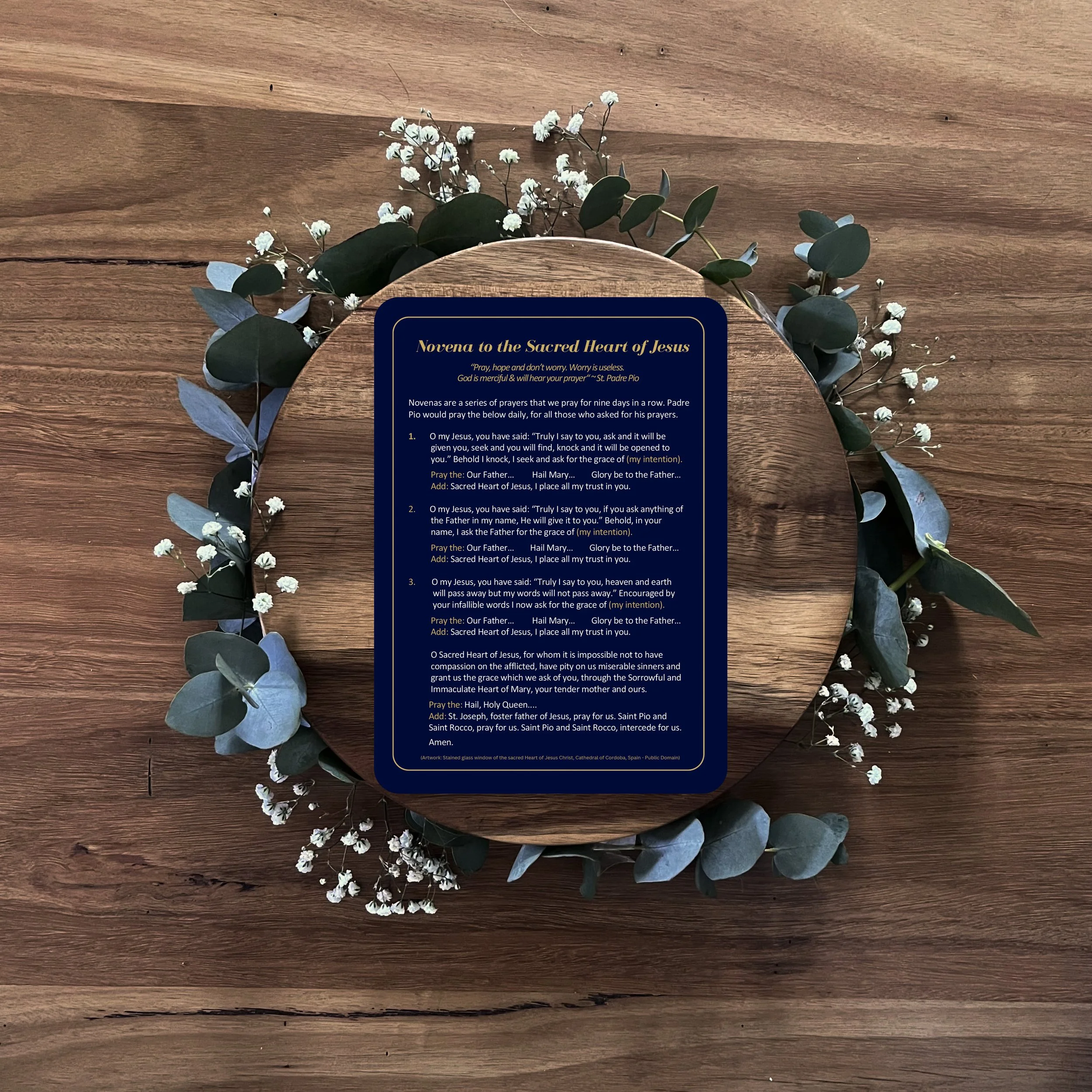 5 beautiful velvet-touch prayer cards (including, up to 1 pamphlet)